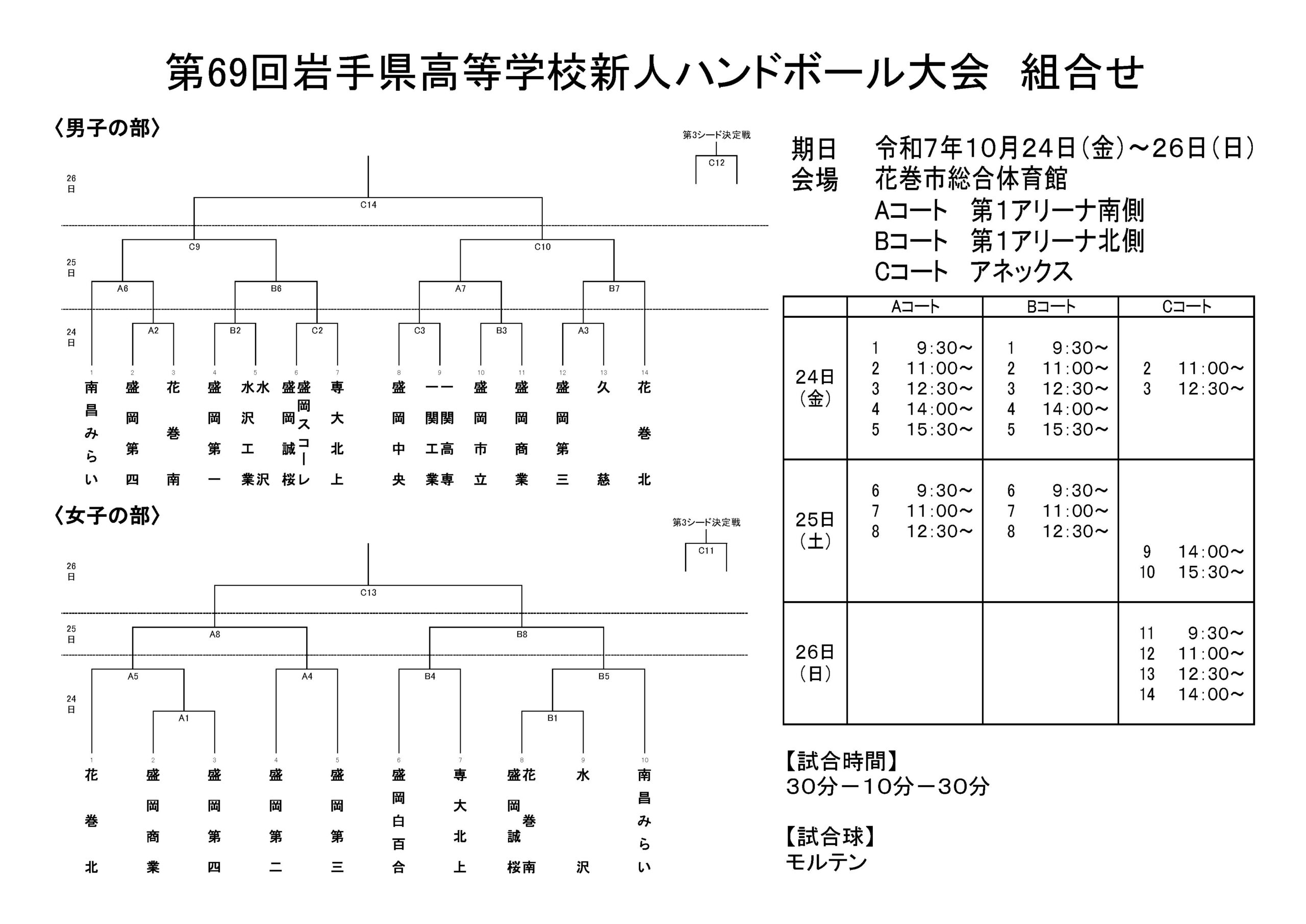 【 第69回岩手県高等学校新人ハンドボール大会 】 2025年10月14日 最終更新日時 : 2025年10月14日 cohho ▶︎ 組合せ 【第69回岩手県高等学校新人ハンドボール大会】組合せダウンロード