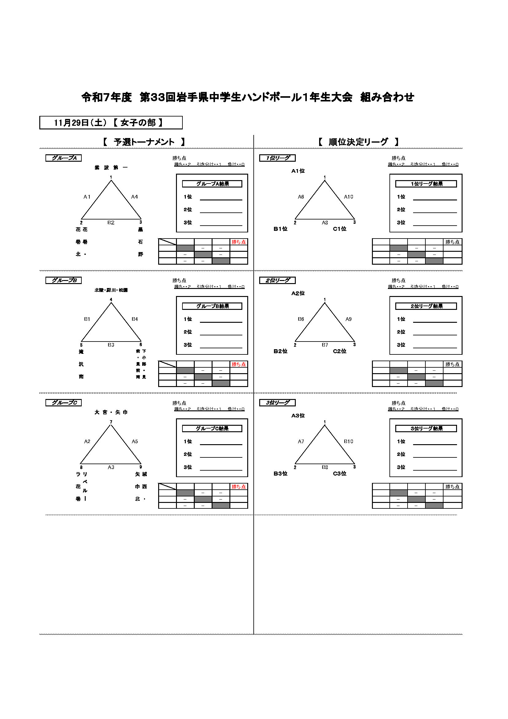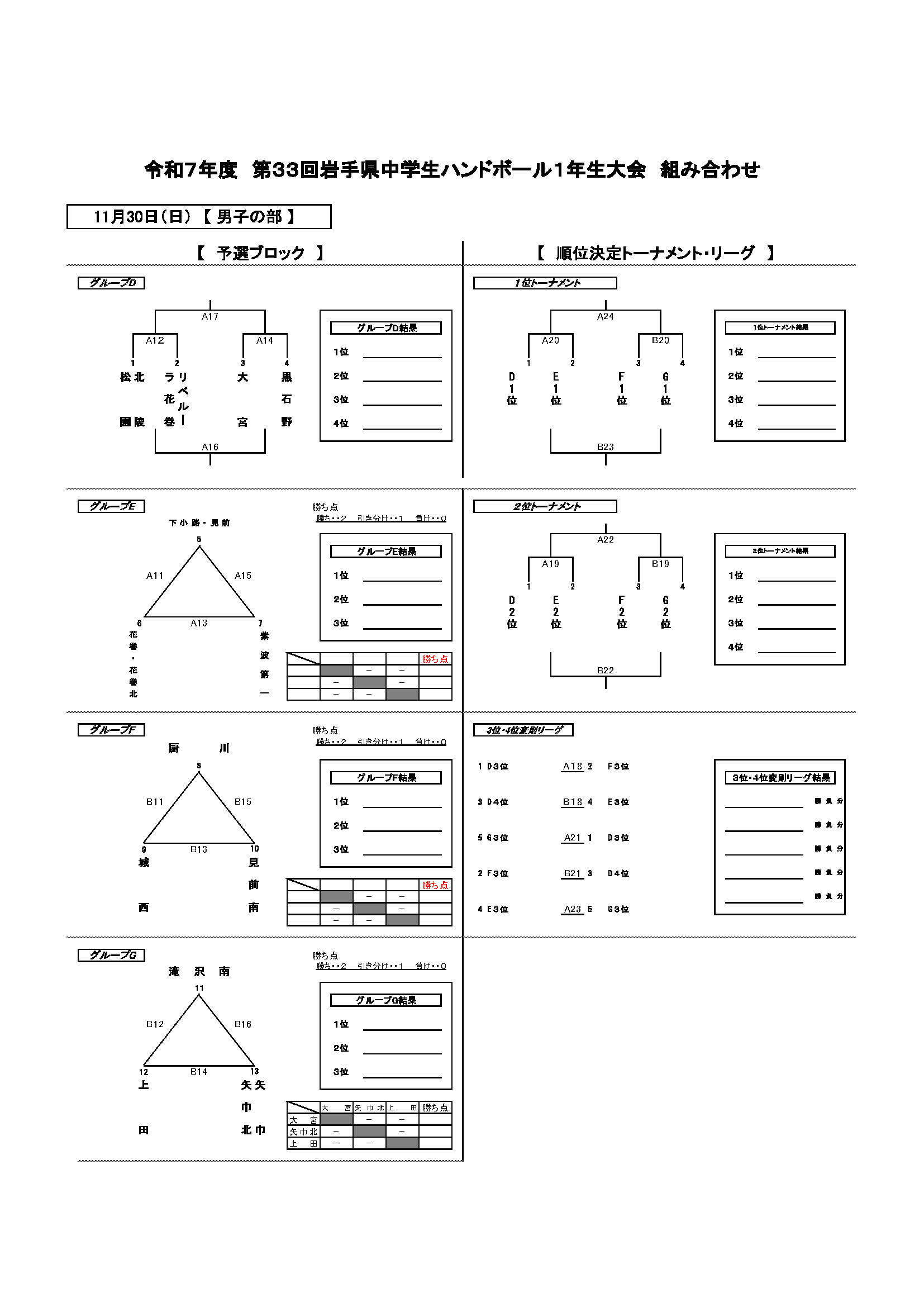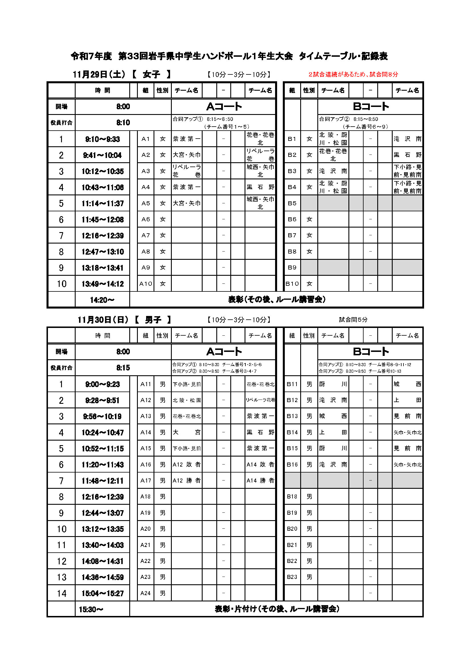 【第33回 岩手県中学生1年生大会】 2025年11月8日 最終更新日時 : 2025年11月8日 cohho ▶︎ 組み合わせ・タイムテーブル 【第33回岩手県中学生1年生大会】組み合わせ_タイムテーブルダウンロード