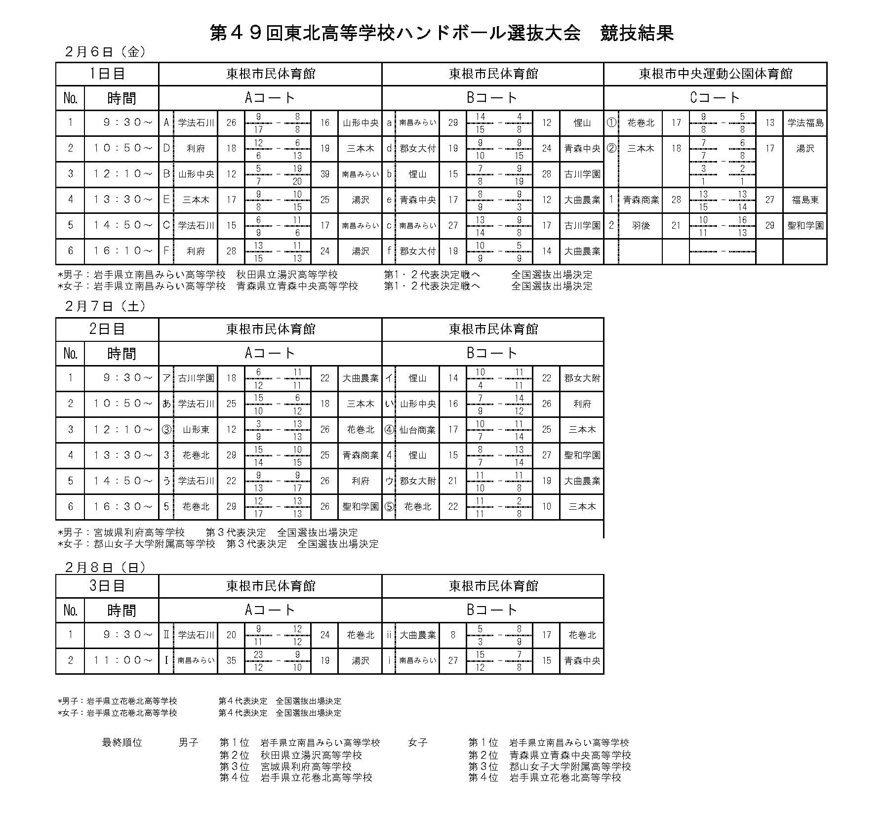 【第49回 東北高等学校選抜大会】 2026年1月16日 最終更新日時 : 2026年2月10日 cohho ▶︎ 試合結果 【第49回東北高等学校選抜大会】試合結果ダウンロード ▶︎ 日程・組合せ 【第49回 東北高等学校選抜大会】日程ダウンロード 【第49回 東北高等学校選抜大会】男子組合せダウンロード 【第49回 東北高等学校選抜大会】女子組合せダウンロード