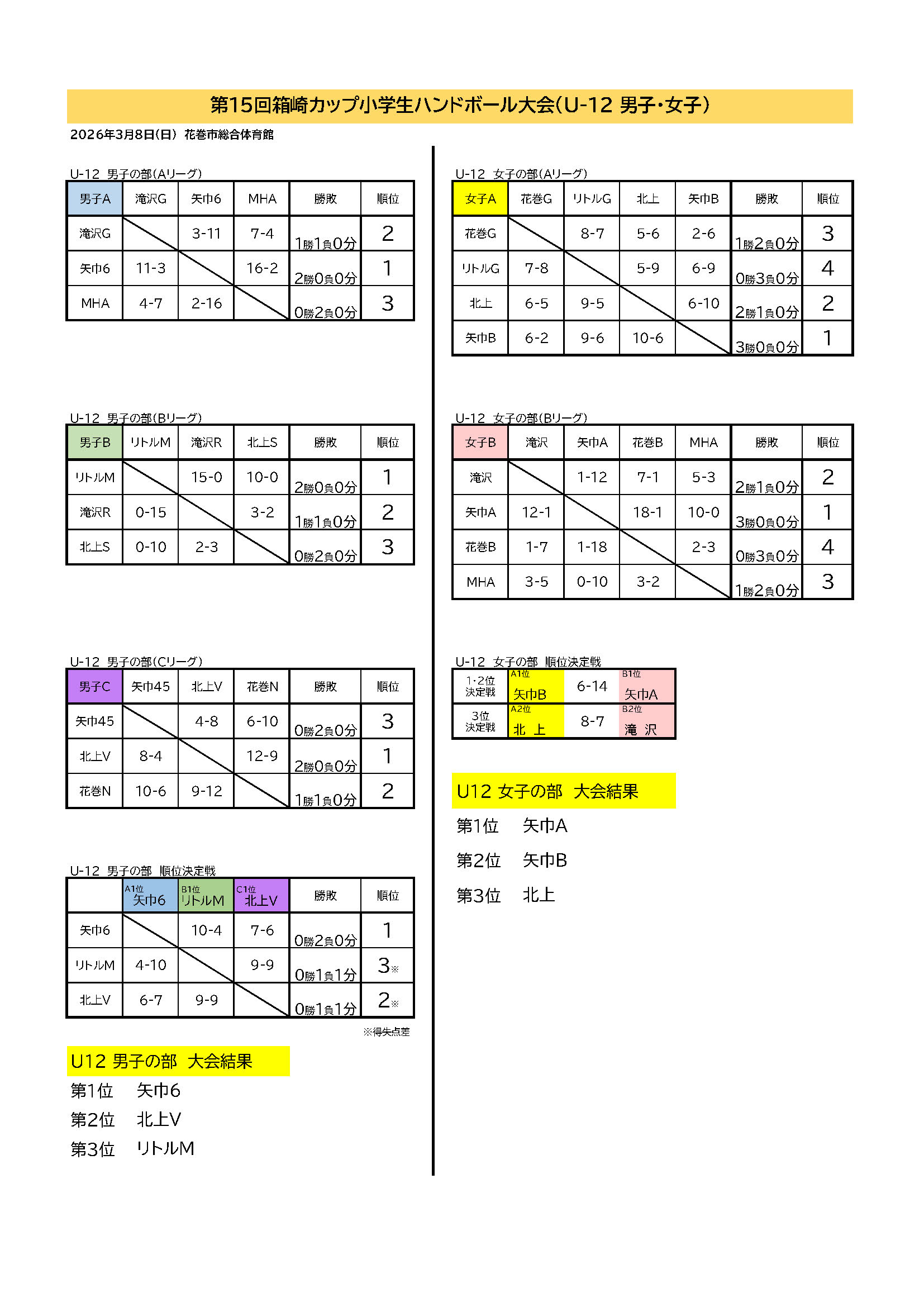 【第15回 箱崎カップ小学生ハンドボール大会】 2026年2月10日 最終更新日時 : 2026年3月11日 cohho ▶︎ 試合結果 【第15回箱崎カップ小学生ハンドボール大会】U12試合結果ダウンロード 【第15回箱崎カップ小学生ハンドボール大会】U8.U10試合結果ダウンロード