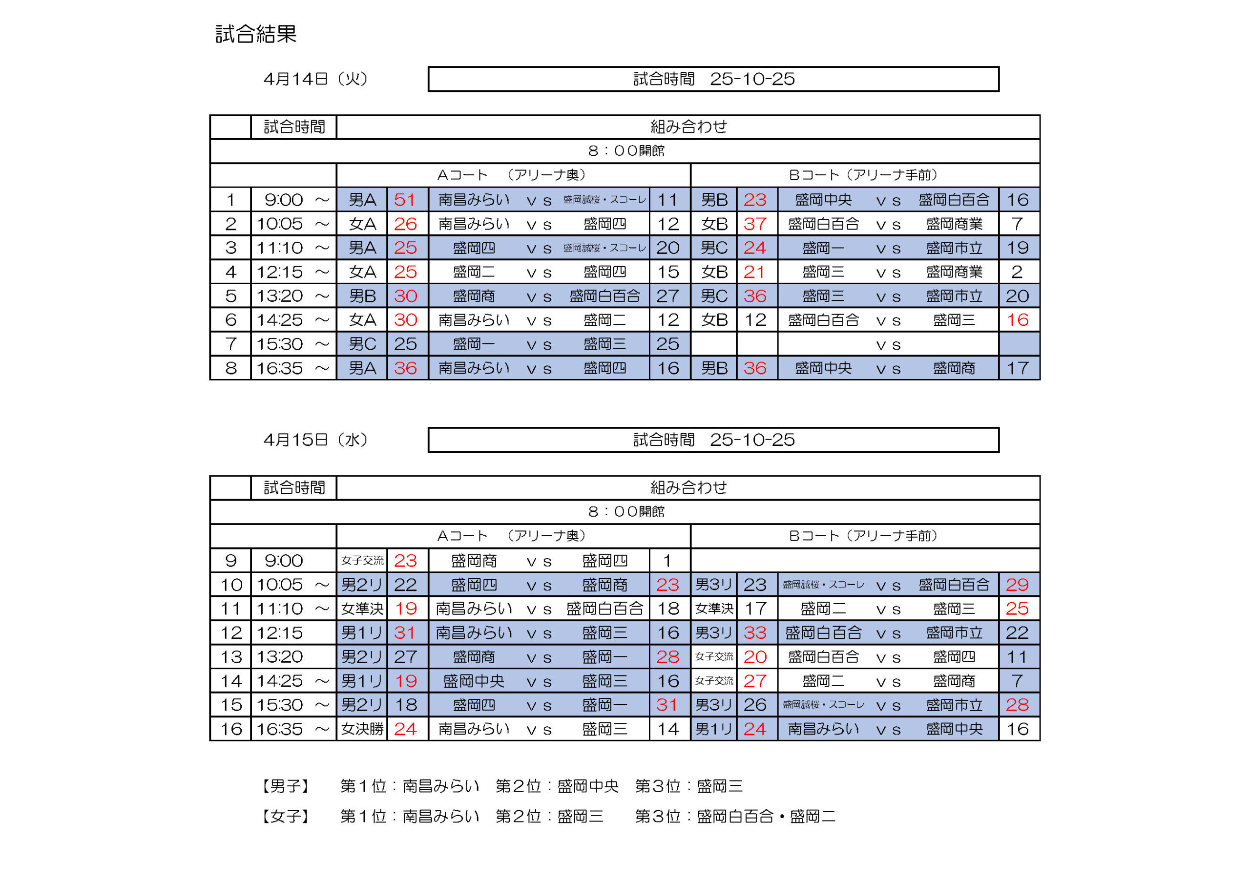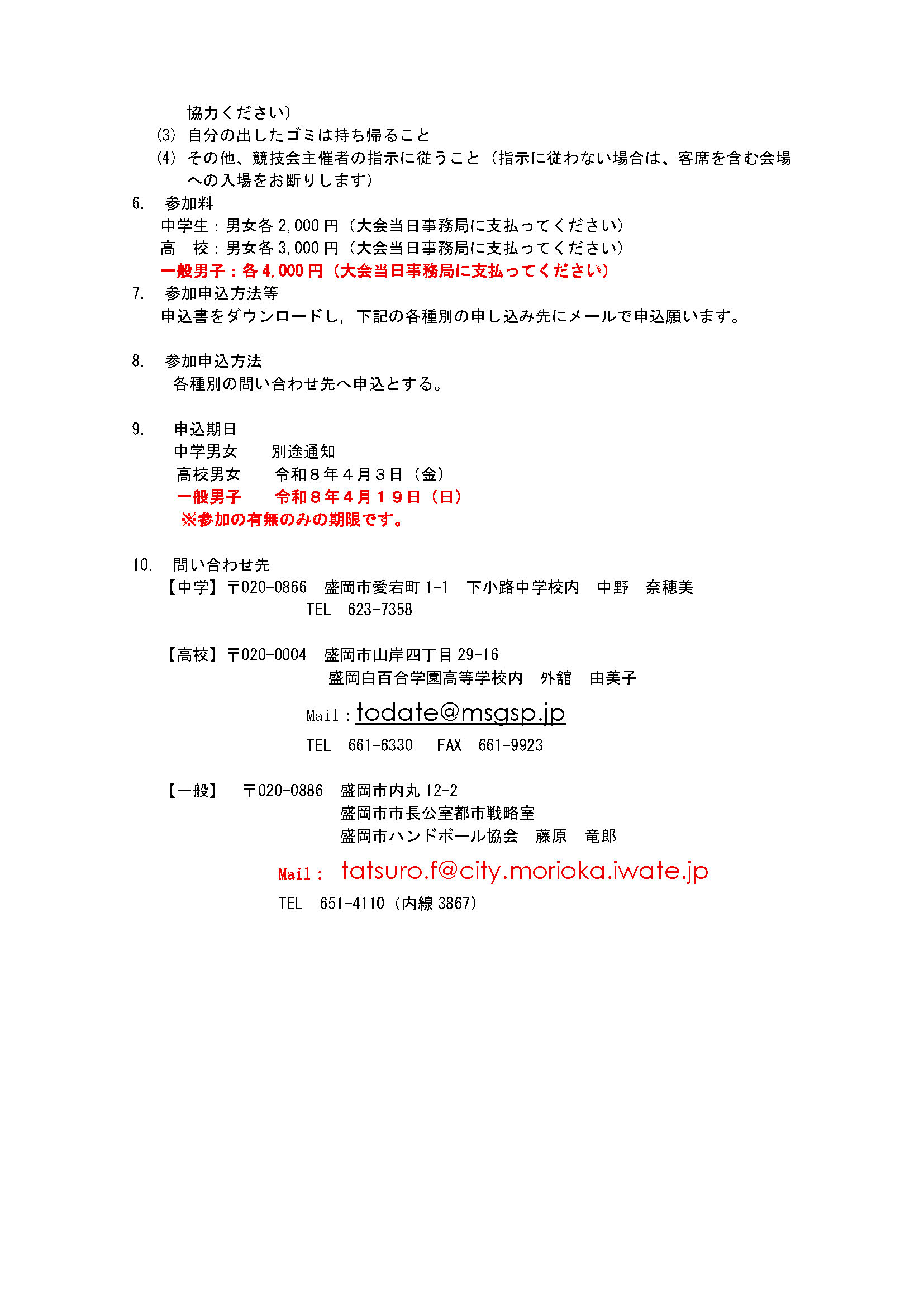 【 第78回 盛岡市民スポーツ大会 】 2026年3月12日 最終更新日時 : 2026年4月24日 cohho ▶︎ 試合結果 【第78回 盛岡市民スポーツ大会】試合結果(高校生)ダウンロード ▶︎ 大会要項・申込書 【第78回 盛岡市民スポーツ大会】大会要項ダウンロード 【第78回 盛岡市民スポーツ大会】申込書ダウンロード